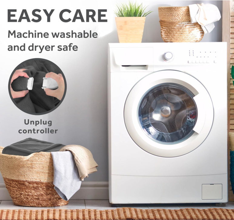 Easy maintenance and everyday use – The detachable controller allows the blanket to be machine washed, making it practical for regular home use. This helps maintain softness and cleanliness over time without requiring special care. Premium wire technology is designed to distribute heat evenly while holding up through routine washing.